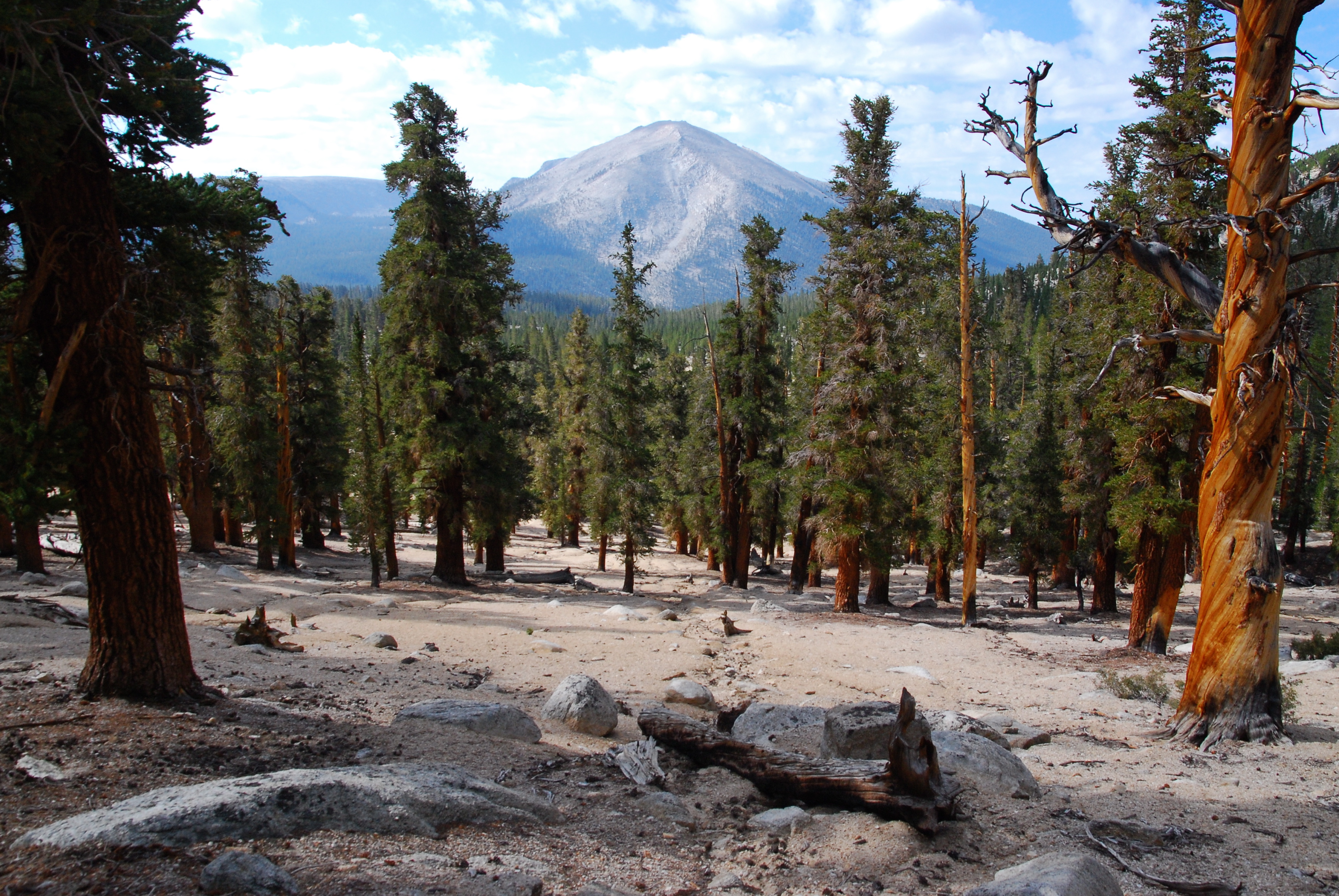 After relishing one of the truly great delights of distance hiking – 2nd Breakfast Snickers – we continue down the other side of the pass to give the approaching voices their turn to enjoy the top in peace. The trail wastes no time dropping us down to Guyot Flats, a perfunctory name that aptly describes the level expanse of sand, pines, more sand, and yet more pines.