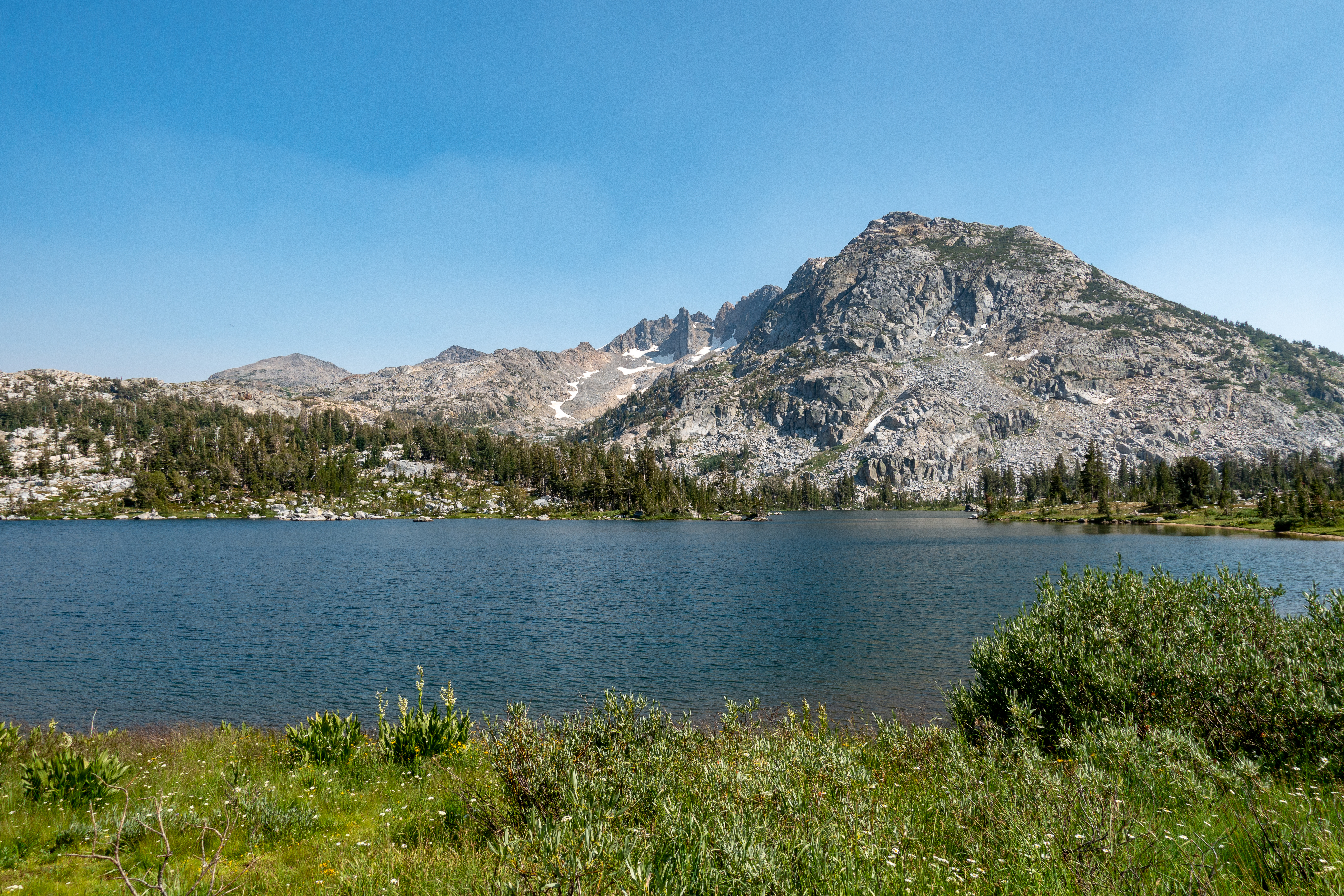 I climb the last rise before Dorothy Lake and survey the water before me, still and blue. I haven’t seen anyone since my break just after Wilma Lake and that doesn’t appear to be changing any time soon. The wildflowers around the lake are thick and overgrown and I pack my hiking pole to be better able to push the blooming stalks of corn lilies taller than me out of the way.