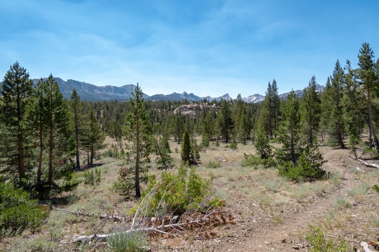 Leaving the West Fork West Walker River behind, the climate immediately changes and it is hot. I walk under my sun umbrella for awhile as I edge around the entrance to Kennedy Canyon, but the air is still so warm I find myself moving from one island of shade to the next to cool off for a few seconds before re-entering the sun.