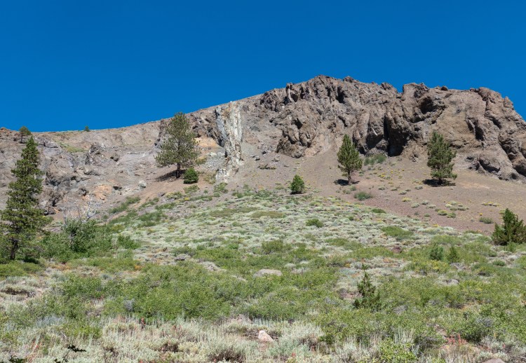 The PCT winds gently north through thin pine forests and some swampy tarns, often sidewinding along rock slabs. At first it’s the familiar silvery granite, but soon veins of red volcanic rock snake through in steadily increasing proportions. By the time I reach the West Fork West Walker River, the red rock emerges as the victor, a fitting companion to the sagebrush now dominating the landscape.