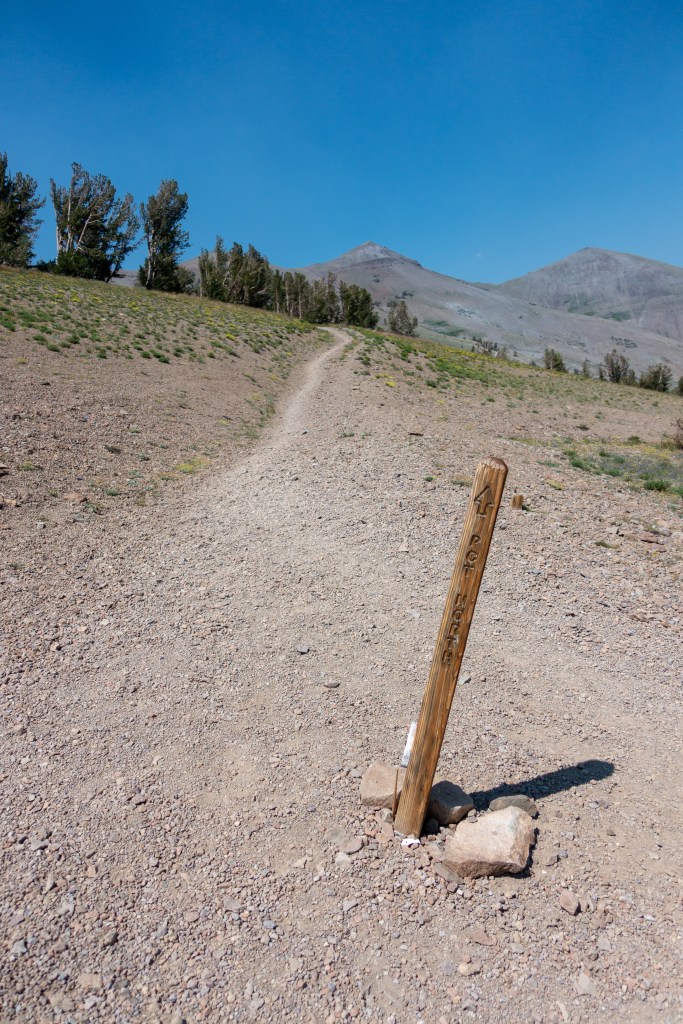 Shuffling to the broken sign marking Sonora Pass, I lift my gaze and peer ahead. It’s one of the most beautiful places I’ve ever seen. The PCT fades into the distance, a highly unlikely line wobbling along the top of what looks like an impossible slope.