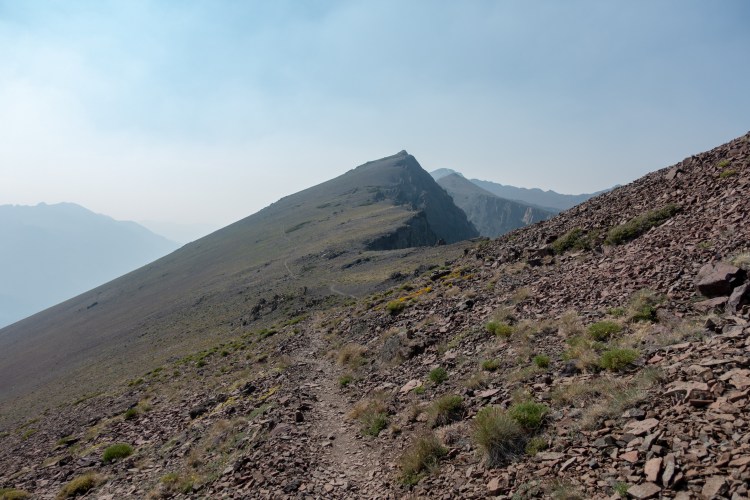 And then, I hit my wall. On this lonesome stretch of exposed 40-degree ridge with no flat spots in sight, my head grows fuzzy and my legs refuse to move. I try to work through my options but my brain runs slow. Making it to Latopie Lake is out of the picture; it’s too late in the day and my body is done — multiple days of too-low food intake has caught up and my glycogen stores are depleted. With only 1.5 liters of water on me and the next easily accessible water many miles away…not great.
